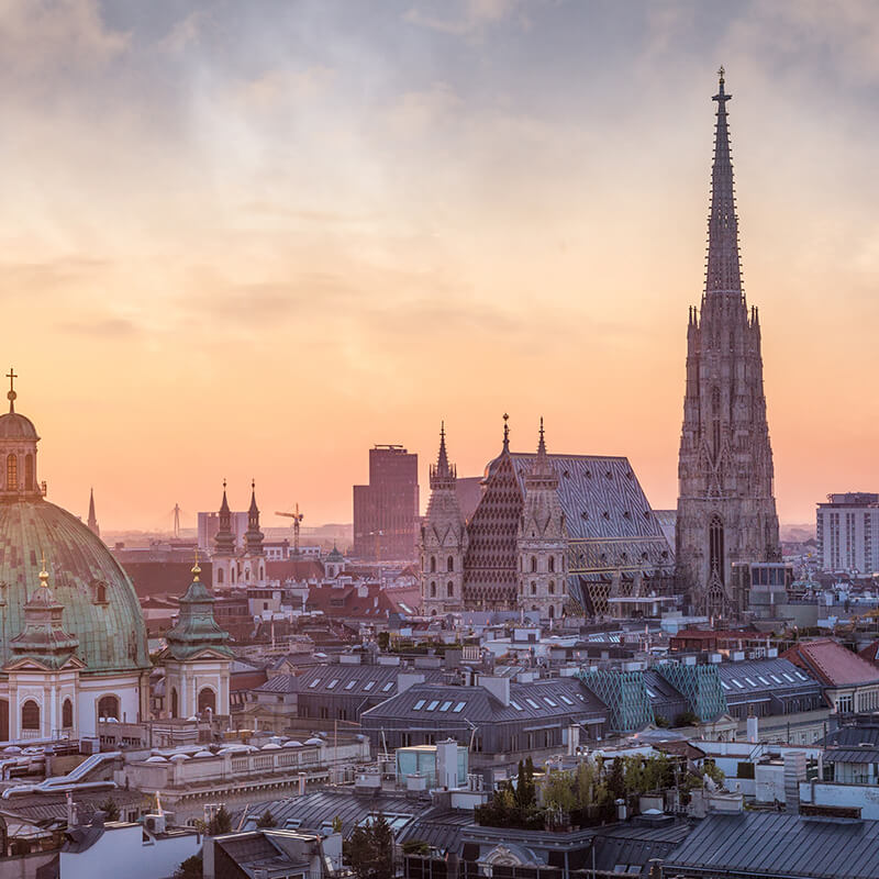 Hoy viajamos a Austria. Conocemos SALZBURGO, la ciudad de Mozart, con su centro renacentista y barroco de gran belleza a la sombra de potente castillo medieval. Continuamos posteriormente nuestra ruta entre lagos y montañas. Etapa de muy gran belleza paisajística en los Alpes; paramos en ST. WOLFGANG, famoso lugar de peregrinación en Austria. Continuamos a TRAUNKIRCHEN junto al hermosísimo lago de TRAUNSEE, incluimos crucero por el lago divisando cuatro castillos y desembarcando en GMUNDEN. Continuación hacia VIENA, llegada al final de la tarde.
