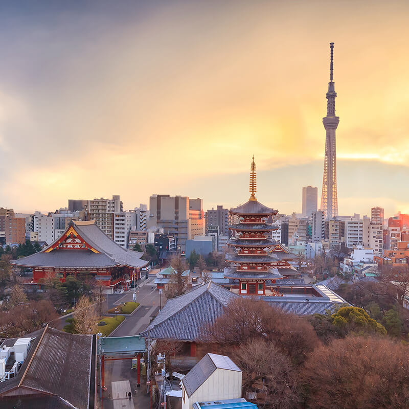 Desayuno. Entrega de equipajes que se trasladan separadamente por camión (1 maleta por persona) al hotel en Tokyo. Es necesario hacer una mochila con ropa y los enseres necesarios para pasar una noche debido a que el servicio de envío de maletas en 1 día está temporalmente suspendido. A las 08:15 hrs traslado con un asistente de habla hispana a la estación de tren de Kyoto (el asistente no les acompañará durante el trayecto). Salida hacia Tokyo en tren bala Nozomi. Llegada a la estación y encuentro con el guía de habla hispana que nos recibirá para realizar la visita del Santuario Sintoísta de Meiji, dedicado al primer emperador del Japón moderno, el emperador Meiji y su esposa, la emperatriz Shoken. Después continuaremos con el Templo Budista Senso-ji, que inmerso dentro del barrio de Asakusa, y lugar de peregrinación y reunión, cuenta con varios edificios, desde la puerta Kamirarimon hasta el salón Komagatado. A la salida del Templo daremos un paseo por la calle comercial Nakamise con sus 90 puestos de souvenirs, artículos tradicionales y exóticos snacks japoneses. Almuerzo. En la plaza del Palacio Imperial podremos adivinar la vida del Emperador en su residencia, rodeado de bellos jardines orientales, torres, muros y fosos de lo que fue un antiguo castillo Edo. Continuaremos la visita hasta el barrio de Shibuya, barrio icónico, popular y de moda de Tokyo en el que miles de personas cruzan cada día su famoso e inmenso cruce de peatones. Alojamiento.