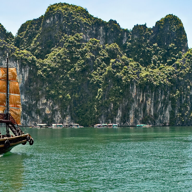 Desayuno. Salida por carretera hacia la Bahía de Halong que significa “el dragón que desciende del mar” en vietnamita, y según la leyenda, fue un dragón quien formó las islas de la bahía. Embarque en un maravilloso crucero con el que visitarán la bahía. Almuerzo a bordo. Acabado el almuerzo, continuaremos navegando y descubriendo miles de islas e islotes de abundante vegetación que emergen en la bahía con sus insólitas formas y diferentes tamaños. Las aguas color esmeralda de este legendario tesoro nos llevan a explorar islas sublimes como la de la Tortuga, la del Perro, la Cabeza de Hombre, etc. Debido a su singular belleza, peculiaridad geológica, riqueza biológica, importancia cultural e histórica, la Bahía de Halong fue declarada Patrimonio de la Humanidad por la UNESCO en 1994 e incluida en la lista de las Siete Maravillas Naturales del Mundo desde 2011. Más allá de la contemplación del magnífico paisaje, disfrutamos de tiempo libre o de algunas de las actividades opcionales tales como nadar, practicar kayak o participar en una demostración de cocina vietnamita en la terraza del barco. Cena y Alojamiento a bordo