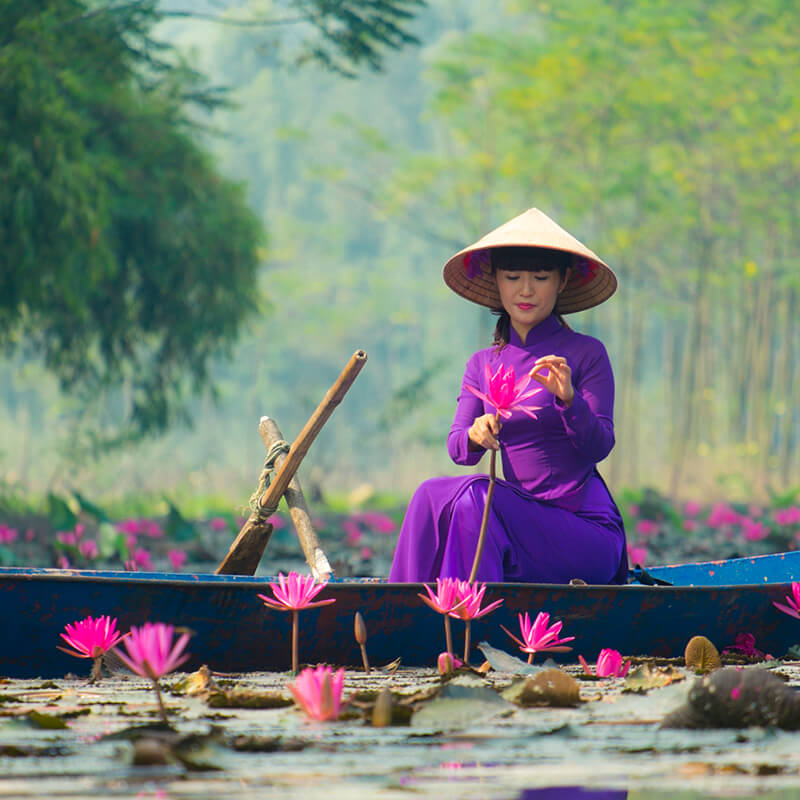Desayuno. Visita de Hanoi, la capital de Vietnam. Es considerada también como una de las pocas ciudades asiáticas con avenidas arboladas, arquitectura colonial francesa, lagos apacibles y templos orientales. Visitaremos el Templo de la Literatura, la primera universidad de Vietnam, fundado en 1070 en honor a Confucio y considerado como el símbolo de Hanói. A continuación, el Museo de Etnología, donde podrán admirar una colección variada y exótica de la cultura vietnamita. Almuerzo en restaurante local. Después del Almuerzo, tendremos una experiencia con las flores y su tradicional forma de adornarlas. Visita a una floristería artesanal para ver cómo se realizan los ramos, cómo se transmite y conserva este hermoso y tradicional arte espiritual de Vietnam que ha llegado a nuestros días generación tras generación. Los invitados aprenderán a reconocer flores exóticas a la vez que disfrutan preparando una ofrenda floral espiritual. Seguimos con la ruta al Mausoleo de Ho Chi Minh, visitando la parte exterior del mismo desde la plaza Ba Dinh. Continuaremos hacia la Pagoda del Pilar Único, construida en 1049 sobre un solo pilar de piedra por el Emperador Ly Thai Tong, quien reinó desde 1028 hasta 1054. La pagoda está diseñada a semejanza de una hoja de flor de loto en honor a Buda. Posteriormente llegaremos al lago Hoan Kiem, el corazón de Hanói, donde daremos un paseo alrededor del lago con una vista panorámica al templo Ngoc Son, situado en medio del lago, junto con el puente rojo The Huc. Por último, realizaremos un paseo panorámico en ciclo pousse por el Barrio Antiguo de Hanói, también conocido como el barrio de las 36 calles ya que en su tiempo fue conocido por el oficio de los artesanos que las habitaban y por los talleres que allí había. Regreso al hotel y Alojamiento en Hanói.